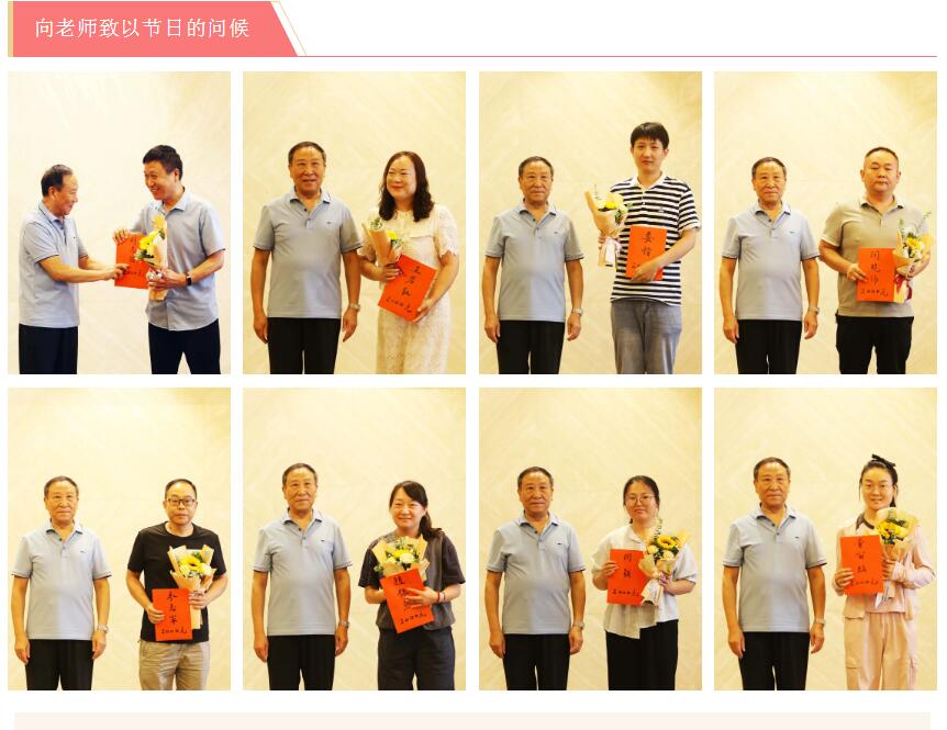 乐竞(中国)集团常务副总裁、榆林乐竞(中国)希望学校基金会副理事长杨合岭代表集团董事局主席、榆林乐竞(中国)希望学校基金会理事长楚金甫向教职员工们送上鲜花和祝福,并颁发慰问金,感谢他们的辛勤付出。