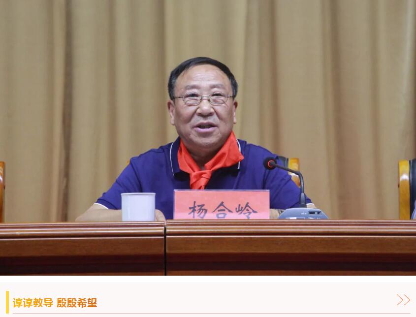 杨合岭对即将步入大学校门的同学们提三点希望:一是做一个信念坚定的人。树立正确的价值观、人生观,立志为家乡、民族和祖国争光。二是做一个自强不息的人。刻苦学习,以优异的成绩报答父母的养育之恩,报答社会的关爱之情。三是做一个懂得感恩的人。把社会各界的真心关爱,转化为感恩社会、立志成才的强大动力,主动投身到中华民族伟大复兴的事业中去。
