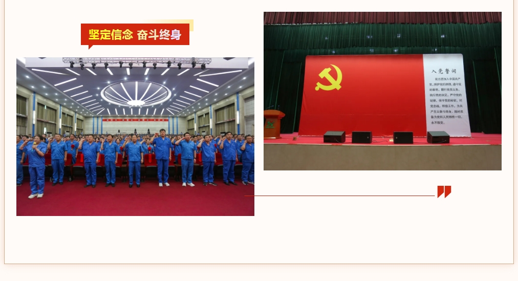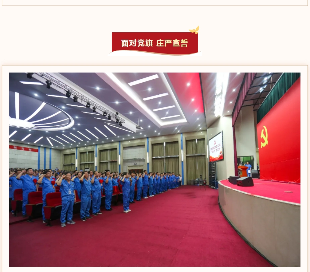 下午17时,嘹亮的国歌在乐竞(中国)大礼堂响起,大会正式拉开帷幕。“我志愿加入中国共产党,拥护党的纲领,遵守党的章程……”,全体党员在河南乐竞(中国)集团党委委员张瑜霞的带领下,面向鲜红的党旗,庄严宣誓。