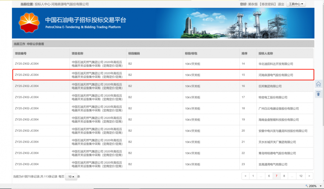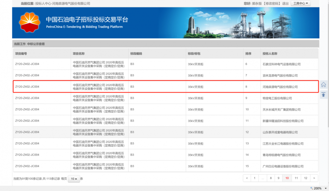 近日,中国石油天然气集团公司在“中国石油电子招标投标交易平台”公布了2020年高低压电器开关设备集中采购(定商定价)招标结果,乐竞(中国)电气的0.4kV低压柜、10kV开关柜、35kV开关柜等产品成功入围中石油甲级供应商名录。
