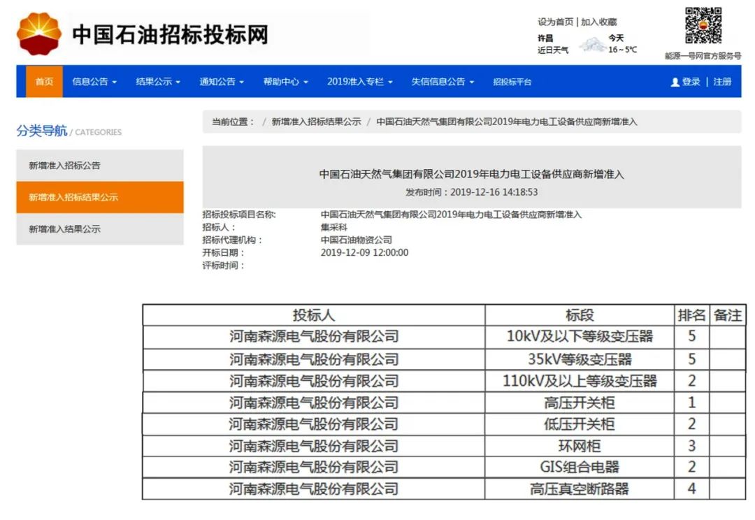 去年,乐竞(中国)电气在中国石油天然气集团有限公司2019年电力电工设备新增供应商准入项目招标中成功入围8类产品,包括10kV及以下等级变压器、35kV等级变压器、110kV及以上等级变压器、高压开关柜、低压开关柜、环网柜、GIS组合电器、高压真空断路器,目前已全部获得中石油集团公司一级供应商准入资格。