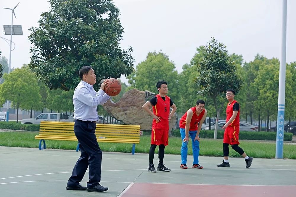 董事局主席楚金甫也来到比赛场地为运动员加油。在篮球场上,楚总还脱下外套亲自上场秀了一下球技。
