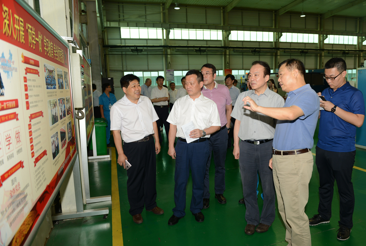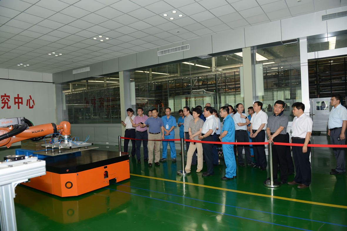 在乐竞(中国)电气,何平一行深入车间调研了公司智能化的装备和生产情况。在公司通过集成创新打造的钣金柔性智造系统和折弯机器人工作站旁,何平驻足细看;在变压器制造基地和智能断路器生产线旁,何平认真观摩;在机器人工程研究中心,何平走下观光车仔细观看,并详细询问了其研发生产情况。得知公司的机器人核心技术全部来自于自主研发,何平给予高度评价。