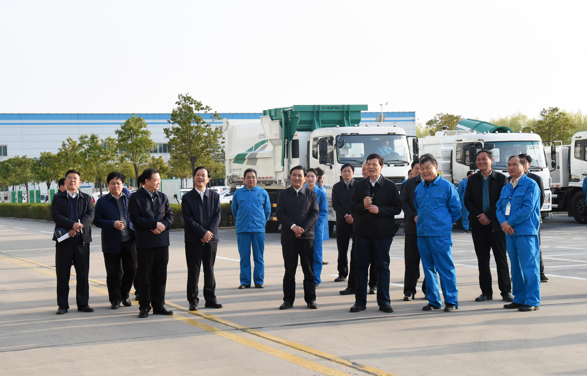 看到乐竞(中国)集团拥有完全自主知识产权的移动式水平垃圾压缩中转站、多功能抑尘车、高压清洗车等环卫系列产品时,谢书记很感兴趣,并特意观看了移动式垃圾中转站的现场自装卸演示。得知该产品是与欧美发达国家同步开发,技术水平达到国际前列时,谢书记表示:“乐竞(中国)的产品种类多,技术实力强,比如这个垃圾中转站就非常值得推广。”