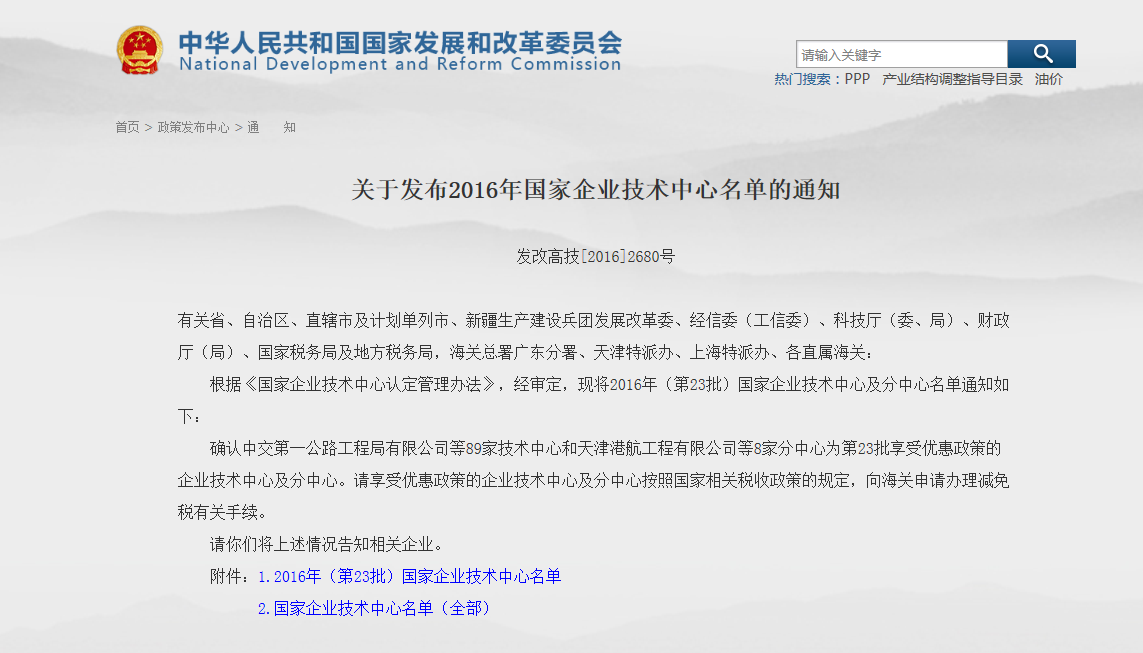 国家发展改革委办公厅5月12日发布《国家发展改革委办公厅关于组织申报2016年(第23批)国家企业技术中心的通知》,在历经积极申报、为期一个多月的核查程序,河南乐竞(中国)电气股份有限公司等99家技术中心被认定为享受国家优惠政策的企业技术中心。