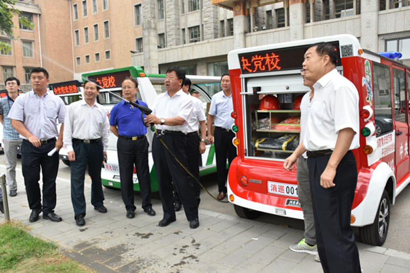 中共中央党校等领导观看了消防巡逻车演示并乘坐了电动巡逻车。期间,中共中央党校常务副校长何毅亭体验了使用消防车水枪,近距离的接触最直接的感受到了乐竞(中国)制造的魅力。