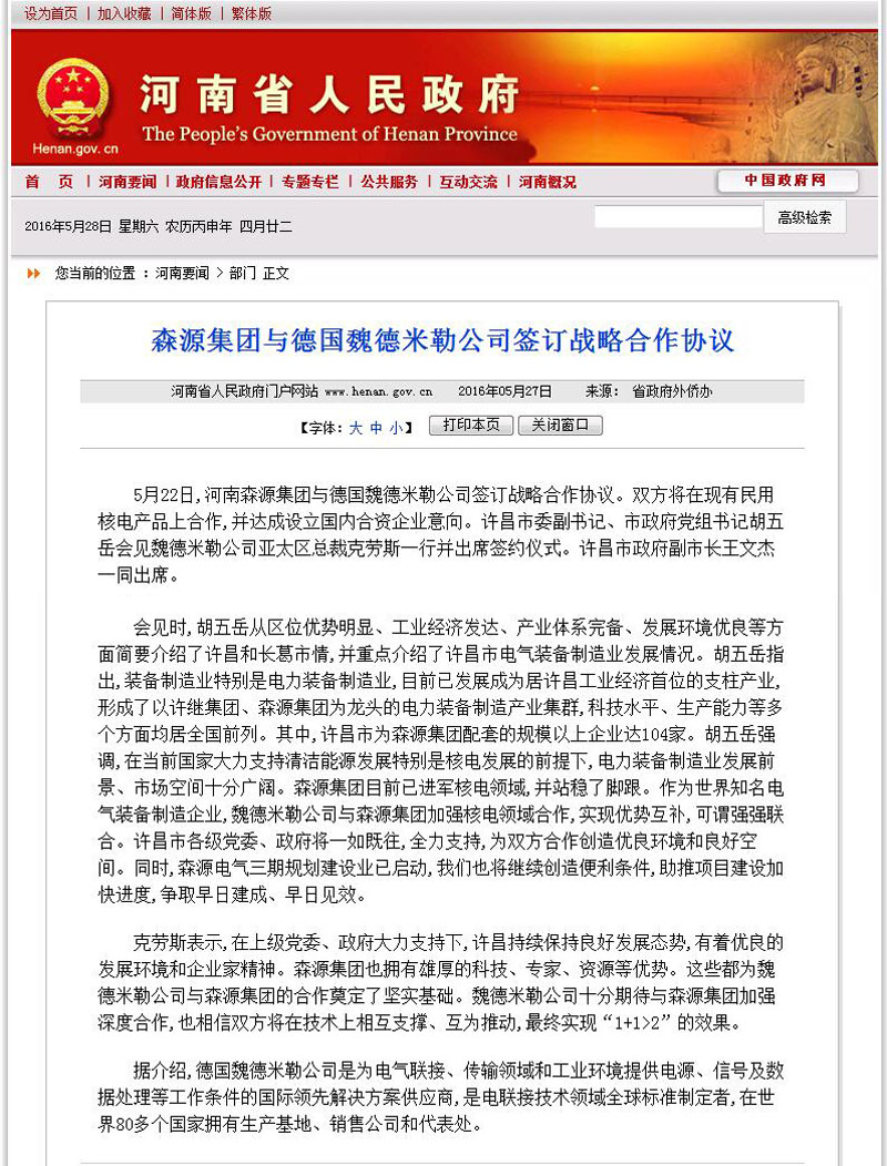 河南省人民政府门户网站河南要闻——乐竞(中国)集团与德国魏德米勒公司签订战略合作协议 发布日期: 2016-05-28 分享 加入收藏 5月27日,河南省人民政府门户网站河南要闻栏目发布新闻《乐竞(中国)集团与德国魏德米勒公司签订战略合作协议》。 原文链接:http://www.henan.gov.cn/jrhn/system/2016/05/27/010644282.shtml 上一条 许昌电视台对乐竞(中国)集团与德国魏德米勒公司签订战略合作协议进行特别报道 2016-05-24 下一条 许昌日报/许昌市人民政府门户网站/许昌电视台——我市第一个山地林光互补光伏发电项目并网发电 李建民出席并网发电仪式 2016-05-31